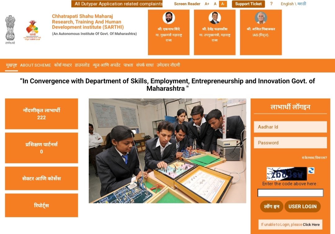 कौशल्य विकास सोसायटीच्या संकेतस्थळावर कौशल्य प्रशिक्षण व अभ्यासक्रम मागणी नोंदविण्याकरिता इच्छुक असणाऱ्या पात्र उमेदवारांनी https://kaushalya.mahaswayam.gov.in/users/sarthi या लिंकवर भेट देऊन नोंदणी करावी.