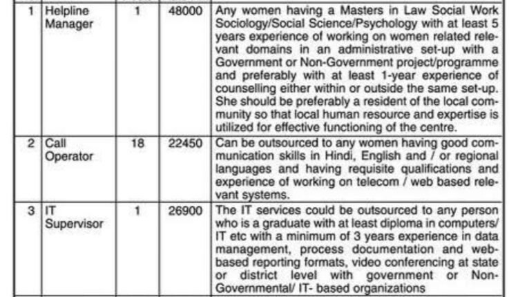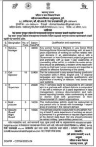 पदाचे नाव- हेल्पलाइन व्यवस्थापक, कॉल ऑपरेटर, आयटी पर्यवेक्षक, बहुउद्देशीय, सुरक्षा रक्षक