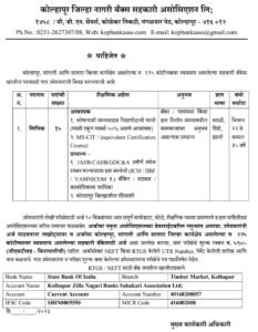 कोल्हापूर जिल्हा नागरी सहकारी बँकेत भरती