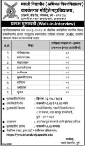मुलाखतीचा पत्ता- भारती विद्यापीठ, भारती विद्यापीठ इमारत, 8 वा मजला, लाल बहादूर शास्त्री मार्ग, पुणे-411030
