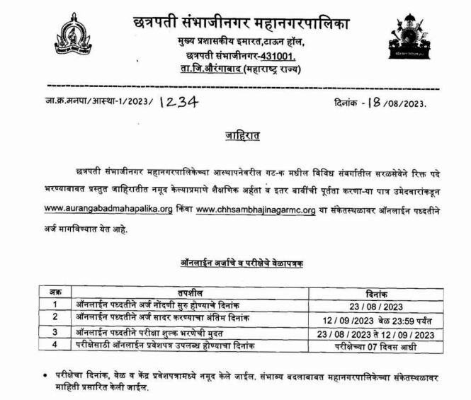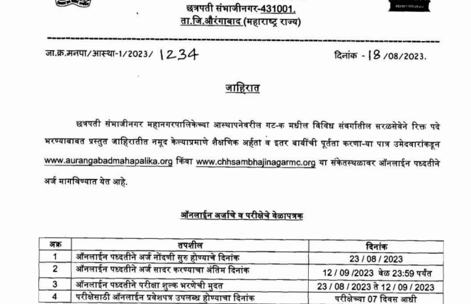 छत्रपती संभाजीनगर महानगरपालिकेत विविध पदांची मोठी भरती