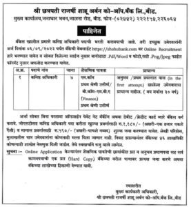 श्री छत्रपती राजर्षी शाहू अर्बन को-ऑपरेटिव्ह बँकेत भरती