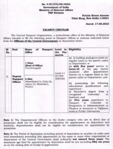पदाचे नाव- उप पासपोर्ट अधिकारी