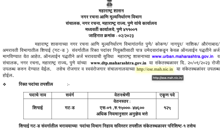 10 वी पास साठी नगररचना विभागात मोठी भरती