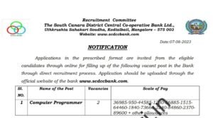 दक्षिण कॅनरा जिल्हा मध्यवर्ती सहकारी बँकेत मोठी भरती