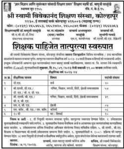 श्री स्वामी विवेकानंद शिक्षण संस्थेत थेट मुलाखतीद्वारे भरती
