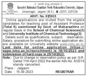 कवयत्री बहिणाबाई चौधरी उत्तर महाराष्ट्र विद्यापीठ, जळगाव अंतर्गत भरती