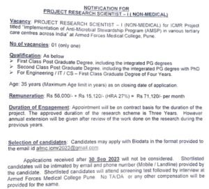 अर्ज करण्याचा ई-मेल- afmc.icmr2023@gmail.com