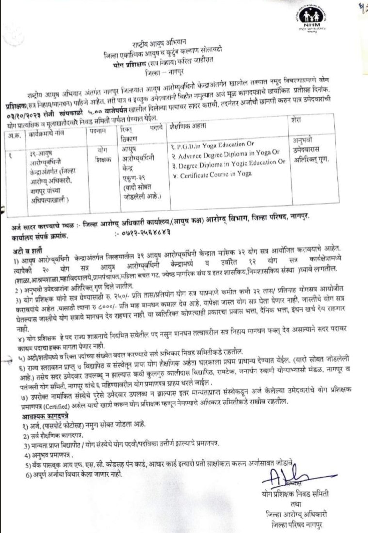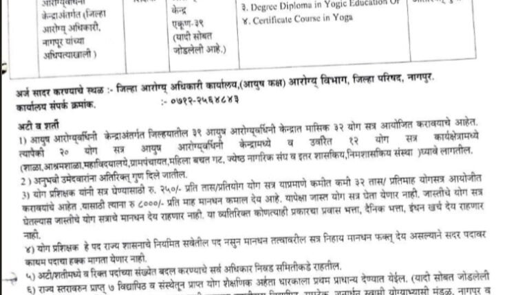 अर्ज करण्याचा पत्ता- जिल्हा आरोग्य अधिकार कार्यालय, (आयुष कक्ष) आरोग्य विभाग, जिल्हा परिषद, नागपूर