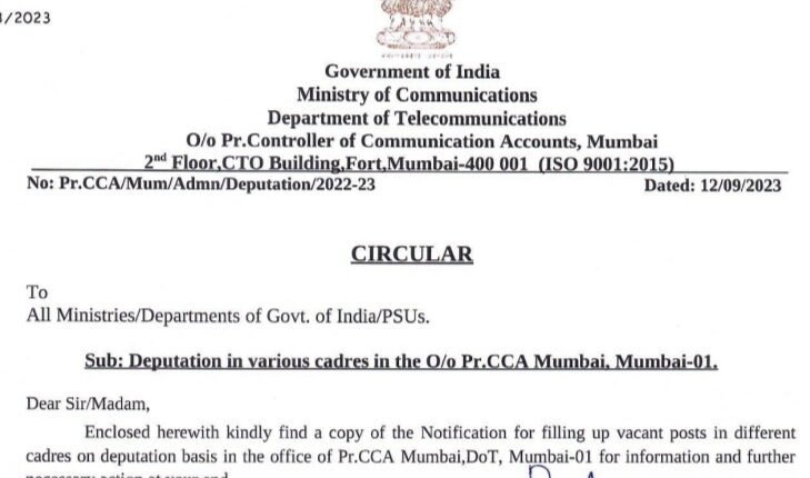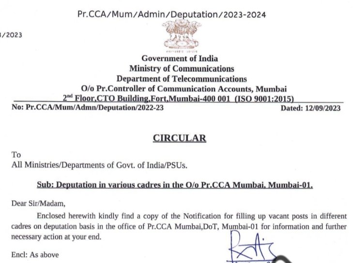 अर्ज करण्याचा पत्ता- द जॉइंट कंट्रोलर ऑफ कम्युनिकेशन अकाउंट्स, ओ/ओ कंट्रोलर ऑफ कम्युनिकेशन अकाउंट्स, दुसरा मजला, सीटीओ बिल्डिंग, फोर्ट, मुंबई-400001