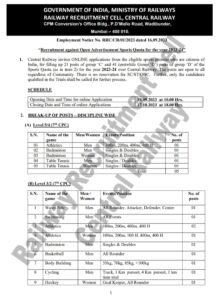 मध्य रेल्वेत खेळाडूंची भरती