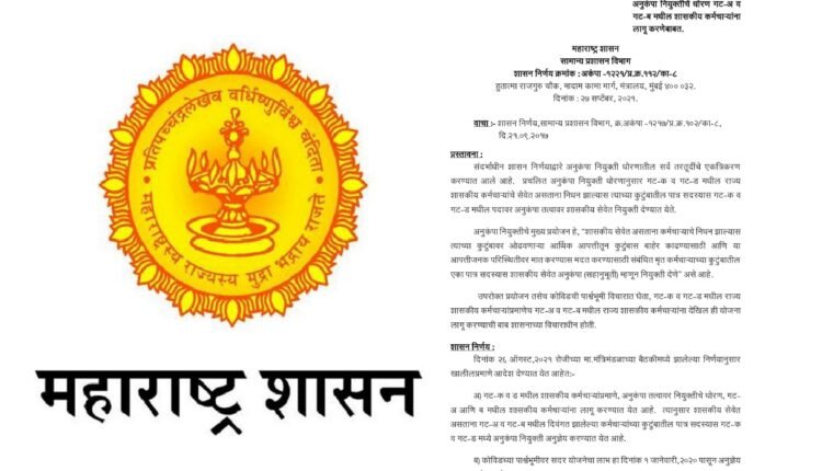 शासन निर्णय! शासकीय सेवेतील गट-अ व गट-ब कर्मचाऱ्यांच्या वारसांना अनुकंपा तत्वावर मिळणार शासकीय सेवेत संधी