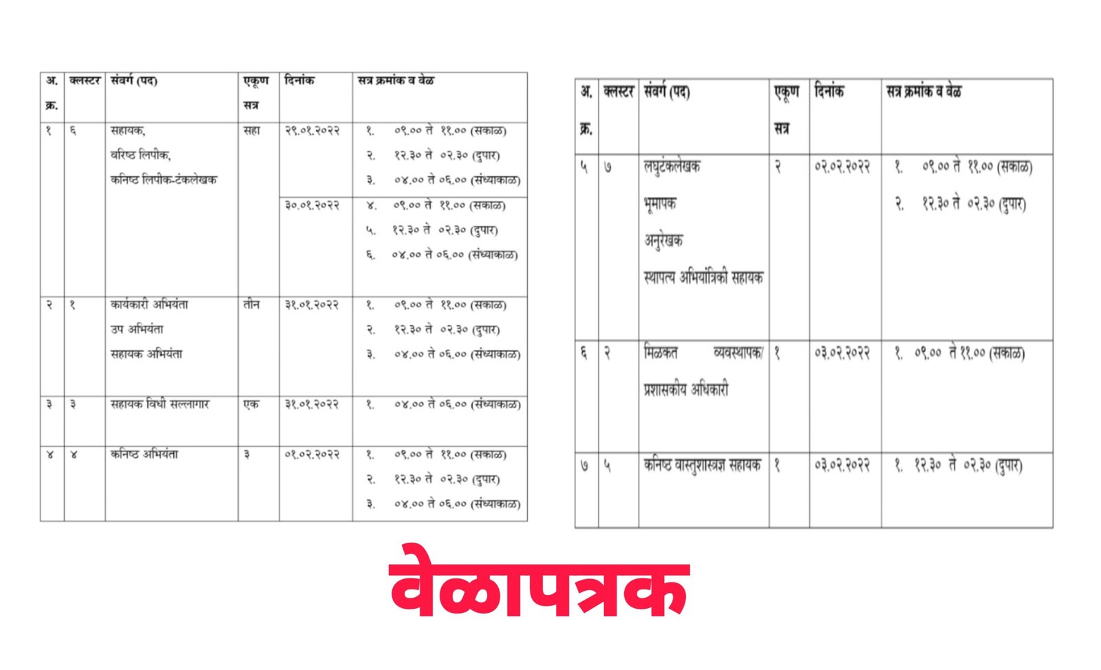 परीक्षेच्या नवीन तारखा- २९ जानेवारी २०२२ ते दिनांक ३ फेब्रुवारी २०२२