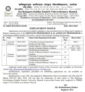 अर्ज करण्याचा पत्ता- रजिस्ट्रार, कविकुलगुरू कालिदास संस्कृत विद्यापीठ, रामटेक