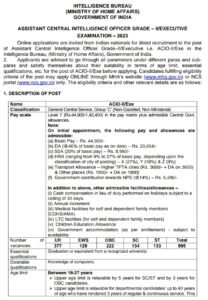 पदाचे नाव- असिस्टंट सेंट्रल इंटेलिजेंस ऑफिसर ग्रेड-II/एक्जिक्टिव (ACIO-II/Exe)