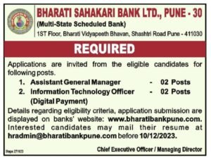 अर्ज करण्याचा ई-मेल- hradmin@bharatibankpune.com