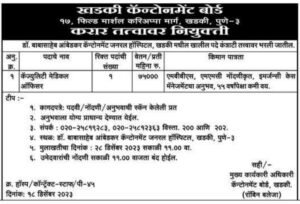 मुलाखतीचा पत्ता- डॉ.बाबासाहेब आंबेडकर कॅन्टोन्मेंट जनरल हॉस्पिटल, खडकी, पुणे-3