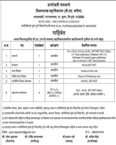 पदाचे नाव- प्राचार्य, ग्रंथपाल, कला शिक्षक, ललित कला शिक्षक, शारीरिक शिक्षण संचालक, सहायक प्राध्यापक