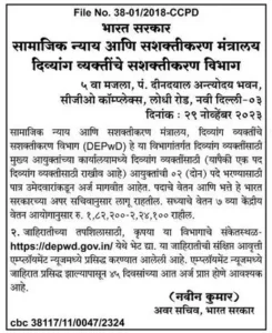 दिव्यांग कल्याण विभागात अधिकारी पदाची भरती