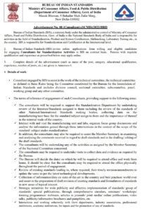 पदाचे नाव- कंसल्टंट-स्टैंडर्डाइजेशन एक्टिविटीज