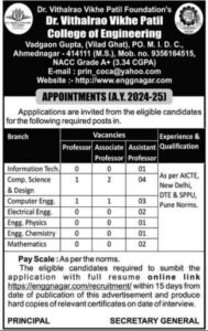 डॉ. विठ्ठलराव विखे पाटील कॉलेज येथे भरती