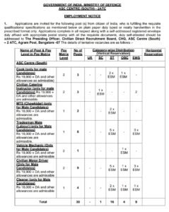 पदाचे नाव- कुक, सिव्हिलियन केटरिंग इंस्ट्रक्टर, MTS (चौकीदार), ट्रेडसमन मेट (लेबर), व्हेईकल मेकॅनिक, सिव्हिलियन मोटर ड्रायव्हर, क्लिनर, लीडिंग फायरमन. फायरमन आणि फायर इंजिन ड्रायव्हर