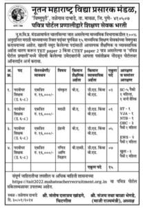 नू.म.वि.प्र. मंडळामार्फत चालविल्या जात असलेल्या माध्यमिक विभागाकडील १००% अनुदानित मराठी माध्यमाच्या रिक्त पदांवर पूर्णवेळ १५ माध्यमिक शिक्षण सेवकांच्या नेमणुका करावयाच्या आहेत.