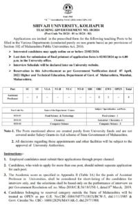 शिवाजी विद्यापीठ, कोल्हापूर येथे भरती