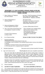 अर्ज करण्याचा पत्ता- सीमाशुल्क उपायुक्त, (कार्मिक व आस्थापना) कार्यालयाचे प्रा. चीफ कमिशनर ऑफ कस्टम्स, न्यू कस्टम हाउस, बॅलार्ड इस्टेट, मुंबई-400001