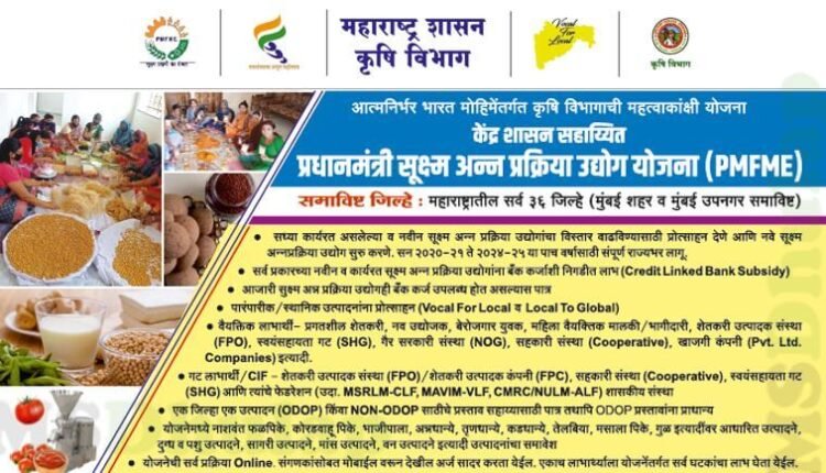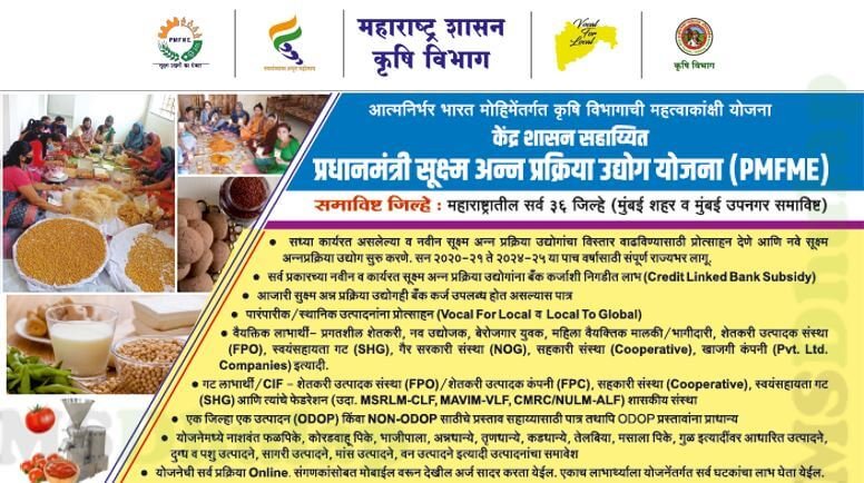 महाराष्ट्र शासन कृषी विभागाची केंद्र शासन सहाय्यीत सुक्ष्म अन्न प्रक्रिया उद्योग योजना