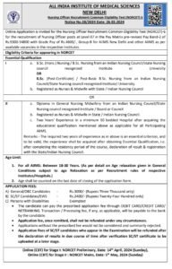 शैक्षणिक पात्रता- B.Sc (Hons.) Nursing/ B.Sc. (Nursing) किंवा GNM डिप्लोमा+ किमान 50 बेड्सच्या हॉस्पिटलमधील 02 वर्षे अनुभव