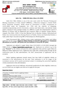 भारत सरकार मिंट, कोलकाता येथे विविध पदांची भरती