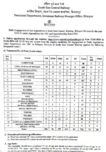 दक्षिण पूर्व मध्य रेल्वेत ‘अप्रेंटिस’ पदाच्या 733 जागांसाठी भरती
