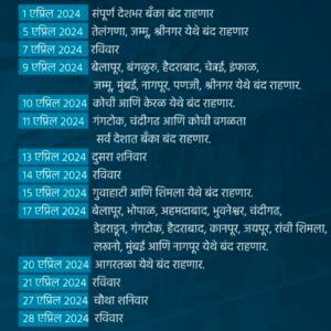 एप्रिलमध्ये तब्बल 14 दिवस बँका बंद राहणार आहेत. त्यामुळे नागरिकांनी बँकांचे व्यवहार करण्यापूर्वी ही यादी एकदा तपासणे गरजेचे आहे.