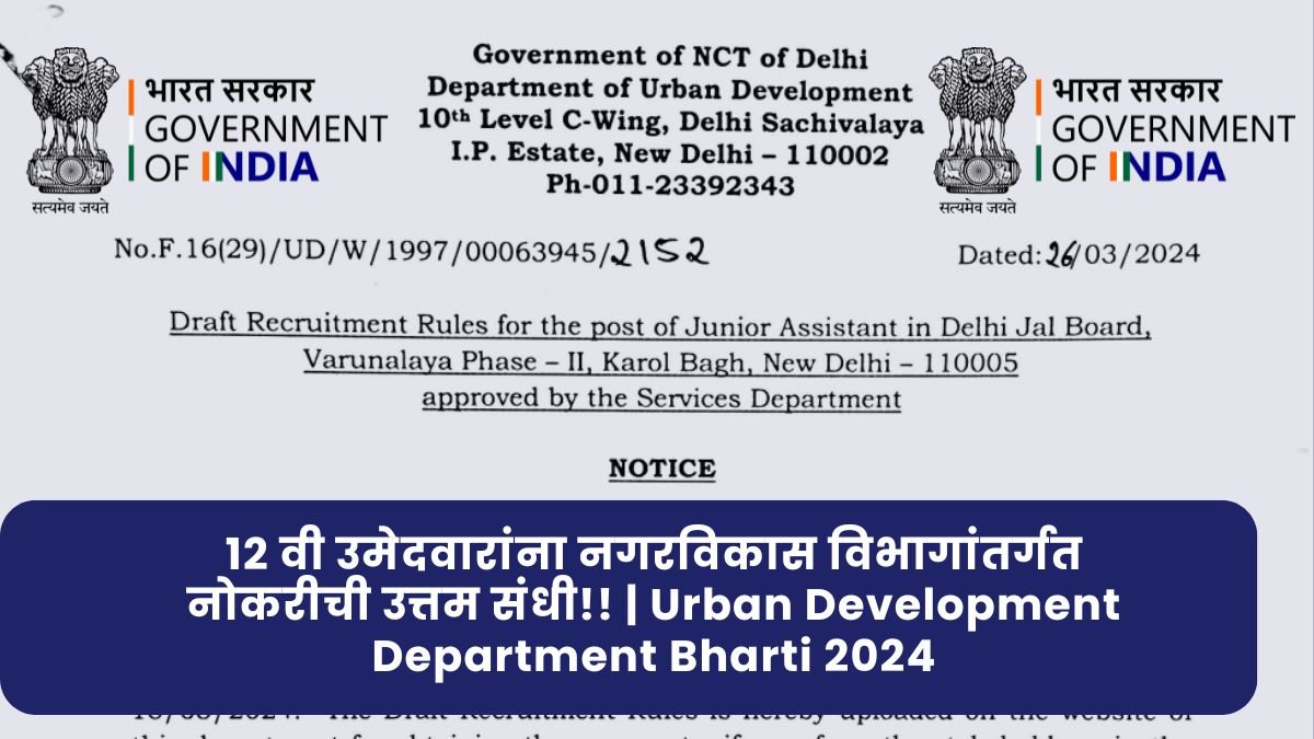 शहरी विकास विभागात कनिष्ठ सहाय्यक पदाची मोठी भरती