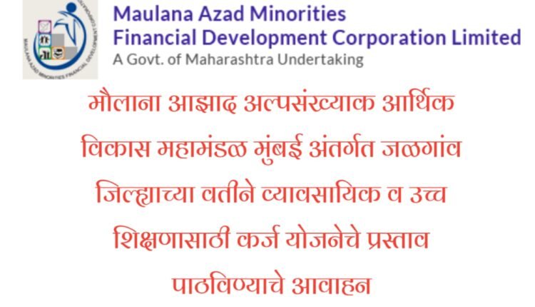 जळगाव- जिल्ह्यातील अल्पसंख्याक समुदायातील उच्च शिक्षण घेणाऱ्या जास्तीत जास्त विद्यार्थ्यांनी महाराष्ट्र शासनाच्या शैक्षणिक कर्ज योजनेचा लाभ घ्यावा असे आवाहन जिल्हा व्यवस्थापक पितांबर पाटील यांनी केलेले आहे. महाराष्ट्र शासनाच्या अल्पसंख्याक विकास विभाग मंत्रालय मुंबई अंतर्गत असलेल्या मौलाना आझाद अल्पसंख्याक आर्थिक विकास महामंडळ मर्या. मुंबई मार्फत महाराष्ट्र राज्यातील अल्पसंख्याक मुस्लिम, बौद्ध, जैन, सिख, ख्रिश्चन, पारसी, ज्यू या समुदायातील गरजू विद्यार्थ्यांकरिता व्यावसायिक, तांत्रिक या सारख्या उच्च अभ्यासक्रमाकरीता (MBA,MBBS,BAMS,BE, IT) शैक्षणिक कर्ज योजनेचे अर्ज सन 2021 -2022 या वर्षासाठी स्विकारली जात आहे. तसेच अर्ज ऑनलाईन भरण्यात येत आहे. या योजनेचे जास्तीत जास्त अल्पसंख्याक समुदायातील विद्यार्थ्यांना फायदा व्हावा यासाठी या योजनेची सुरुवात करण्यात आलेली आहे. जिल्हा कार्यालयात संपूर्ण कागदपत्रांसह हे अर्ज जमा करण्यात यावी. अधिक माहिती करीता संबधित जिल्हा कार्यलय व महामंडळाच्या https://mamfdc.maharashtra.gov.in या संकेतस्थळावर संपर्क करा. तसेच ऑनलाईन अर्ज https://malms.maharashtra.gov.in या लिंकवर करु शकता.