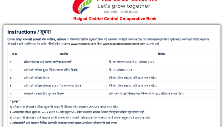 रायगड मध्यवर्ती सहकारी बँकेत लिपिक पदाची मोठी भरती