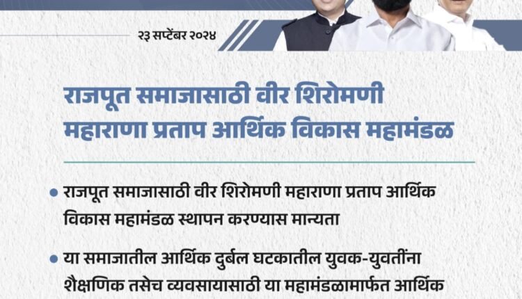 राजपूत समाजासाठी वीर शिरोमणी आर्थिक विकास महाराणा प्रताप महामंडळ स्थापन ; शासन निर्णय जारी…