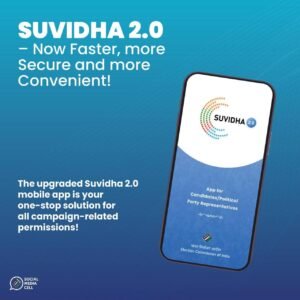 भारत निवडणूक आयोगाने ‘सुविधा 2.0’ हे मोबाईल अॅप अद्ययावत केले असून याद्वारे उमेदवार आणि पक्षांना आता कोणत्याही ठिकाणाहून सहजपणे निवडणूक मोहिमेच्या परवानग्या ऑनलाईन सुविधेद्वारे मिळणार असल्याचे मुख्य निवडणूक अधिकारी कार्यालयाने कळविले आहे.