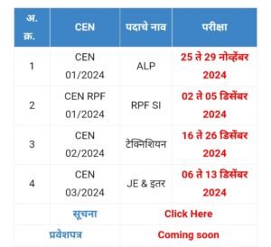 नोकरी विषयी भारतीय रेल्वे ‘टेक्निशियन’ पदांच्या 14298 जागांसाठी भरती / अर्ज स्थिती By Chetan Patil On Nov 13, 2024 0 Share परीक्षा – 16 ते 26 डिसेंबर 2024 अर्ज स्थिती तपासणी – www.rrbapply.gov.in 0 Share FacebookTwitterGoogle+ReddItWhatsAppPinterestEmail