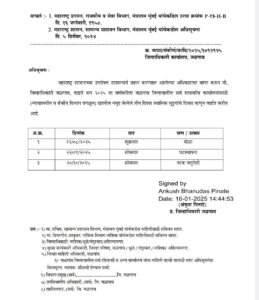 नागरिकांनो, प्रभारी जिल्हाधिकारी अंकुश पिनाटे यांनी ‘या’ दिवशी सुट्ट्या केल्या जाहीर; अधिकृत पत्राद्वारे दिली माहिती