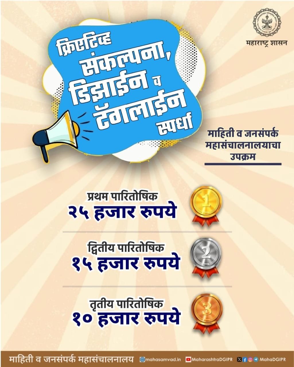 असे आहेत स्पर्धेचे निकष- जाहिरात किती अनोखी आणि कल्पक आहे. ती इतरांपासून वेगळी आहे का? संकल्पना ताज्या आणि नाविन्यपूर्ण आहेत का हे परीक्षकांकडून तपासण्यात येतील. जाहिरात नवीन विचार किंवा पद्धतीवर तसेच रचनात्मक पद्धतीने सादर करण्यात आली आहे का हे पाहण्यात येईल. जाहिरात प्रेक्षकांवर कोणता भावनिक किंवा मानसिक प्रतिसाद निर्माण करते. ती लक्ष वेधून घेते का, प्रभावशाली प्रतिक्रिया निर्माण करते का, किंवा समज बदलते का?याचा विचार यावेळी होईल. जाहिरातीचे सौंदर्यशास्त्र. ती दृश्यात्मकदृष्ट्या आकर्षक आहे का?, मांडणी नीटनेटकी आहे का?, आणि संदेश प्रभावीपणे पोहोचवते का हे पाहण्यात येईल. जाहिरातमधील लिखित सामग्रीची गुणवत्ता. भाषा स्पष्ट, आकर्षक आणि संदेश प्रभावीपणे पोहोचवणारी आहे का हे तपासण्यात येईल. जाहिरात निवडलेल्या माध्यमाचा (जसे की टीव्ही, प्रिंट, डिजिटल इ.) कसा वापर करते. ते प्लॅटफॉर्मवर योग्य प्रकारे वापरले जाते का, ज्यामुळे जास्तीत जास्त रिच आणि प्रभावशाली होते का हे पाहण्यात येईल. सर्जनशीलता, थीमशी सुसंगतता, संदेशाची स्पष्टता, दृश्य प्रभाव, मौलिकता यावर निर्णय घेण्यात येईल. या स्पर्धांबाबत माहिती व जनसंपर्क महासंचालनालयाचा निर्णय अंतिम राहिल.