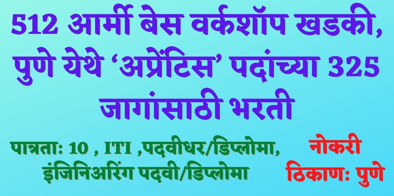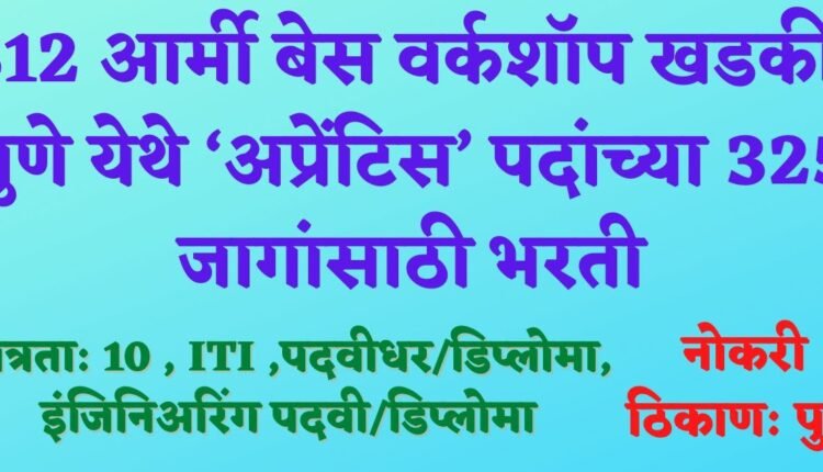 512 आर्मी बेस वर्कशॉप खडकी येथे ‘अप्रेंटिस’ पदांची 325 जागांसाठी भरती