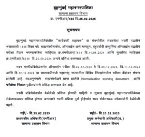 शासन निर्णय बृहन्मुंबई महानगरपालिका (BMC) कार्यकारी सहायक”- सरळसेवा भरती सन-2024 ऑनलाईन परीक्षेच्या निकालाबाबत सूचनापत्रक जारी… By Chetan Patil On Feb 26, 2025 0 Share BMC सूचनापत्रक 👆 0 Share FacebookTwitterGoogle+ReddItWhatsAppPinterestEmail