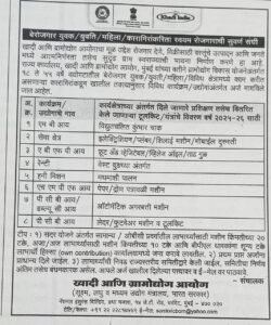 खादी आणि ग्रामोद्योग आयोगाचा मूळ उद्देश रोजगार देणे, विक्रीसाठी वस्तूंचे उत्पादन आणि जनते मध्ये आत्मनिर्भरता तसेच सुदृढ ग्राम स्वराज्याची भावना निर्माण करणे हा आहे. राज्य कार्यालय, खादी आणि ग्रामोद्योग आयोग, मुंबई यांच्या वतीने ग्रामोद्योग विकास योजनेअंतर्गत १८ ते ५५ वर्षे वयोगटातील बेरोजगार युवक/युवती/महिला/विविध क्षेत्रामध्ये काम करीत असणाऱ्या कारागिरांकडून खालील तक्त्यानुसार विविध कार्यक्रम/उद्योगांअंतर्गत अर्ज मागविले जात आहेत.