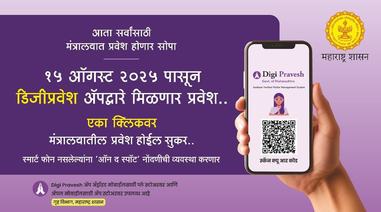 १५ ऑगस्ट २०२५ पासून डीजीप्रवेश ॲपद्वारे प्रवेश मिळणार एका क्लिकवर 🔗https://play.google.com/store/apps/details?id=com.secutechautomation.digipravesh
