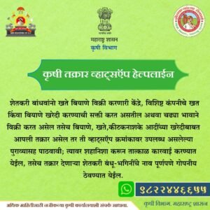 कृषी विभागाच्या योजनाशासन निर्णय कृषी तक्रार ‘व्हाट्सअप’ हेल्पलाईन जारी…. By Chetan Patil On Oct 8, 2025 0 Share 0 Share FacebookTwitterGoogle+ReddItWhatsAppPinterestEmail