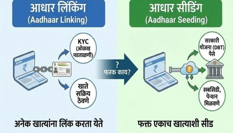 आधार कार्ड बँक खात्याशी जोडताना “आधार लिंकिंग” आणि “आधार सीडिंग” या दोन संज्ञा वापरल्या जातात. मात्र दोन्हीमध्ये महत्त्वाचा फरक आहे.