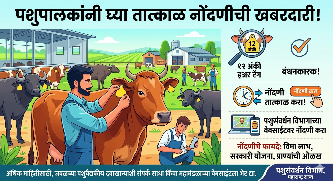 पशुसंवर्धन विभागाने स्पष्ट केले आहे की, वेळेत नोंदणी केल्यास भविष्यातील नुकसान टाळता येईल आणि विविध योजनांचा लाभ सहज मिळू शकेल.