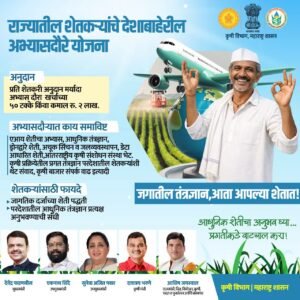 जागतिक शेतीचा प्रत्यक्ष अनुभव:- या योजनेमुळे शेतकऱ्यांना प्रगत देशांतील शेती पद्धती, नवीन तंत्रज्ञान आणि आधुनिक व्यवस्थापन प्रणाली जवळून पाहता येणार आहेत. “जगातील तंत्रज्ञान, आता आपल्या शेतात” या संकल्पनेला यामुळे खऱ्या अर्थाने चालना मिळणार आहे.